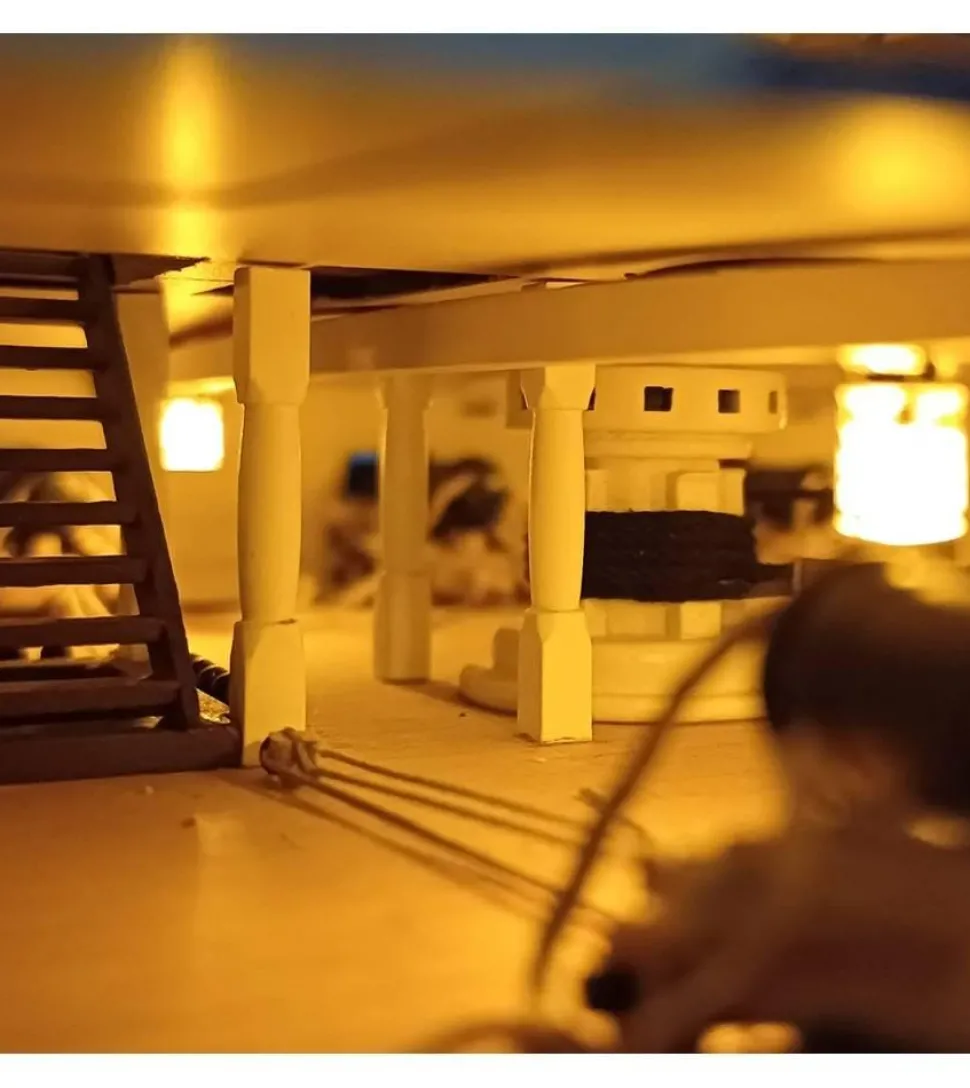 Et enfin, illuminez le bateau pour lui donner plus de réalisme avec les 122 lumières à effet bougie du Ensemble d’Éclairage LED pour Maquette HMS Victory (22900LED).