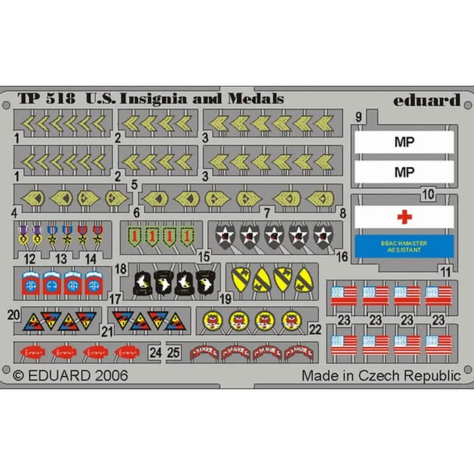 Set de médailles et insignes de l’armée américaine pendant la Seconde Guerre Mondiale à l’échelle 1/35 – Eduard accessoires