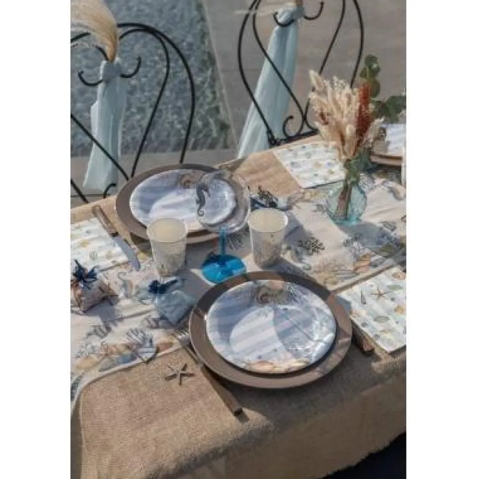 Sachet de 10 Gobelets Coquillages en carton, illustration coquillages marins, corail, fond des mers.