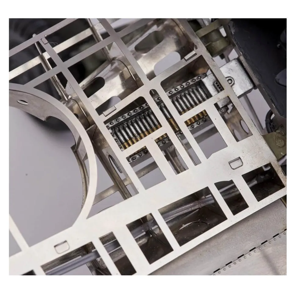 Ce kit de modélisme en métal et en photodécoupe de qualité supérieure du plus important avion de combat allemand de la Seconde Guerre Mondiale, Messerschmitt Bf109G, contient un modèle réduit exceptionnel qui est déjà la réplique la plus fidèle du marché. Destiné aux modélistes initiés, la maquette 1/16 du BF109G est doté d’un système de languettes qui permet d’assembler la structure de l’avion presque sans utiliser de colle. Précisément, les pièces métalliques pour le construire sont en plaques de gravure en acier inoxydable et en die-cast injecté.