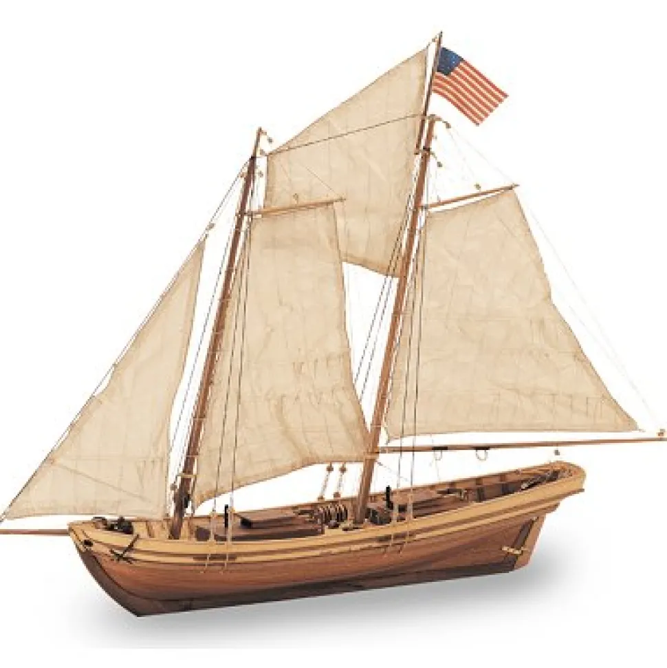 Maquette en bois – Swift. Le Swift était au début du XIXème siècle un Pilot Boat de l’Etat américain de Virginie.Grâce à leurs qualités techniques, les principales puissances maritimes de l’époque agrandirent ces bateaux pour donner naissance aux fameux Baltimore Clippers.Largeur : 11.00 cm Longueur : 54.00 cmNote : Les instructions sont au format DVD pour ordinateur (Windows et Mac). Aucune instruction imprimée n’est incluse.