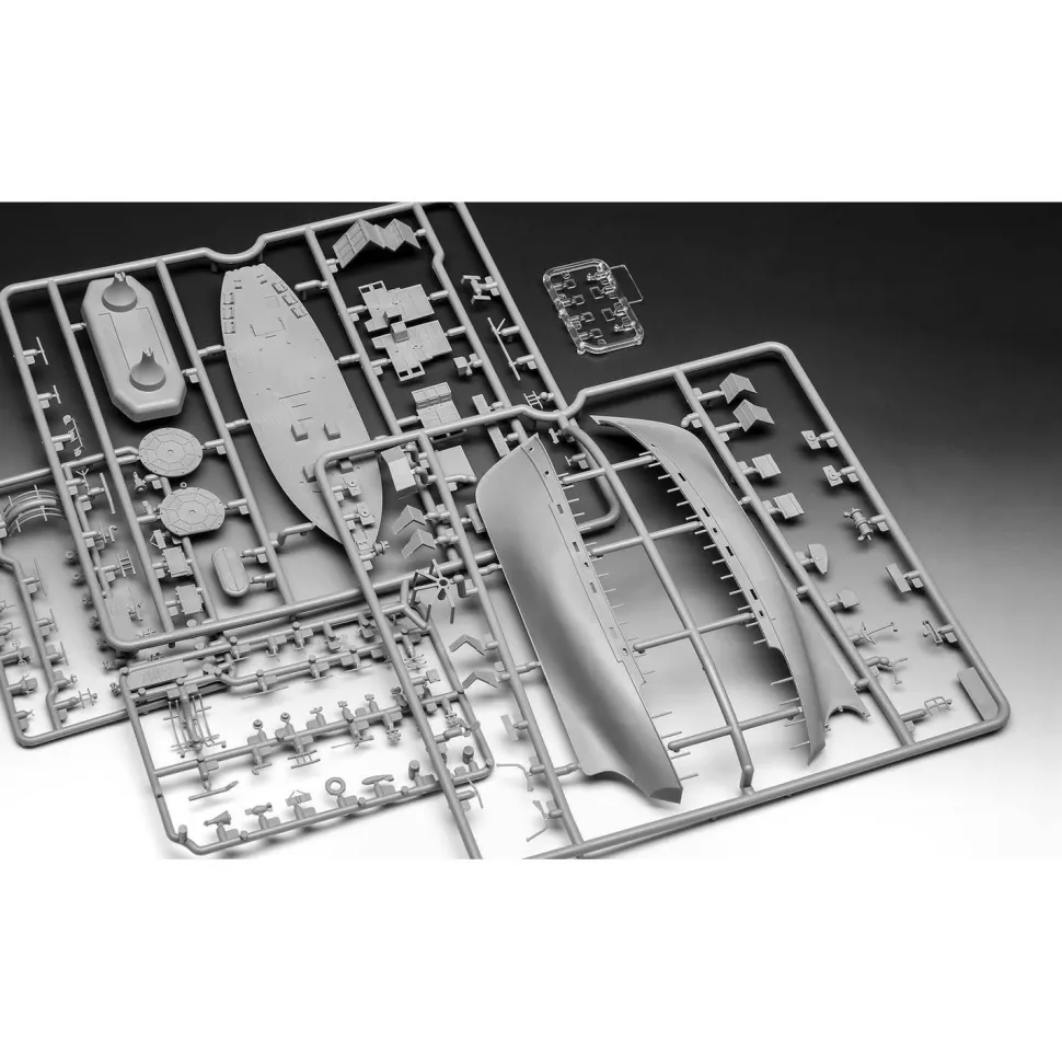Cutter de pêche de guerre à l’échelle 1:144 : une expérience de maquette historiquePièces détachées : 102Echelle : 1:144Découvrez la maquette du Kriegsfischkutter (KFK), un morceau d’histoire à recréer. Ce kit à l’échelle 1:144 apporte la polyvalence et la robustesse des bateaux de pêche utilisés pendant la Seconde Guerre mondiale directement chez vous. Avec 102 pièces usinées avec précision, ce modèle offre un défi aux modélistes avancés. Le modèle fini mesure 168 mm de longueur, 46 mm de hauteur et 40 mm de largeur, ce qui est idéal pour un affichage détaillé.Le soin particulier apporté à la reproduction du jeu et les subtilités incorporées confèrent à la maquette un réalisme extraordinaire. Recommandé pour les amateurs de modélisme à partir de 12 ans, ce kit est l’occasion idéale de combiner un intérêt pour l’histoire avec l’artisanat.Contenu de la livraison : 102 composants très détaillés Plate-forme détaillée Comprend un support de modèle pour une présentation attrayante Instructions de montage claires Décalcomanies pour marquages authentiquesCaractéristiques spéciales : Réplique authentique d’un cotre de pêche de guerre Fidélité exacte à l’échelle de 1:144 Pont très détaillé qui reflète la construction robuste du KFK Comprend un support de modèle pour une présentation impressionnante Idéal pour les techniques avancées de modélismeArrière-plan:Le Kriegsfischtrater (KFK) faisait partie intégrante de la marine allemande pendant la Seconde Guerre mondiale. Conçus à l’origine comme des bateaux de pêche, ceux-ci ont été convertis à un usage militaire et étaient connus pour leur adaptabilité et leur robustesse. Ces modèles ont joué un rôle crucial dans l’approvisionnement et le soutien de la Marine. Le kit de maquette KFK capture l’essence de ces navires historiques et offre une façon fascinante de s’engager dans un morceau important de l’histoire maritime.