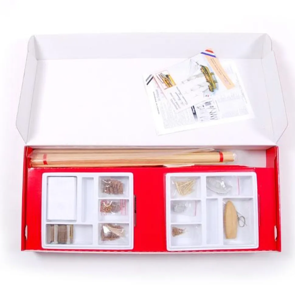 Série Patrimoine – Corsaire Français » Le Tonnant » 1793René Dutray-Trouin, Robert Surcouf, Claude Forbin, Jean Bart… autant de noms célèbres s’étant illustrés dans des combats mémorables ! L’équipage aux bandeaux rouges, le pistolet à la ceinture, les pieds nus, les culottes déchirées sur des cuisses musclées, yeux de braise, le couteau entre les dents, le grappin à la main » A l’abordage !! » Le Tonnant est un corsaire typique de la période révolutionnaire. Un modèle chargé d’évocations historiques sanglantes… – Construction tout bois, bordé sur couples découpés au jet d’eau ( précision 1/10 mm ) avec baguettes de section et d’essences d’arbres différentes adaptées au modèle du bateau. – Accastillage complet ( 200 pièces ): métal de fonderie et bois teinté, fil de lin, voiles en coton sérigraphiées. – Plans très détaillés à l’échelle avec nombreux croquis de montage aux différents stades d’avancement. – Notice historique de présentation – Dimensions : 85 x 27 x 59 cm – Echelle : 1/50ème