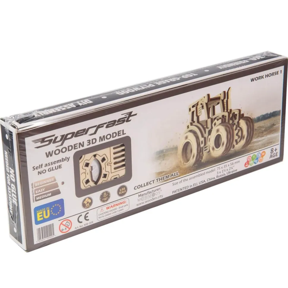 Découvrez cette magnifique maquette en bois de tracteur : Work Horse 1. Ce puzzle 3D mécanique d’une grande élégance est très réaliste.