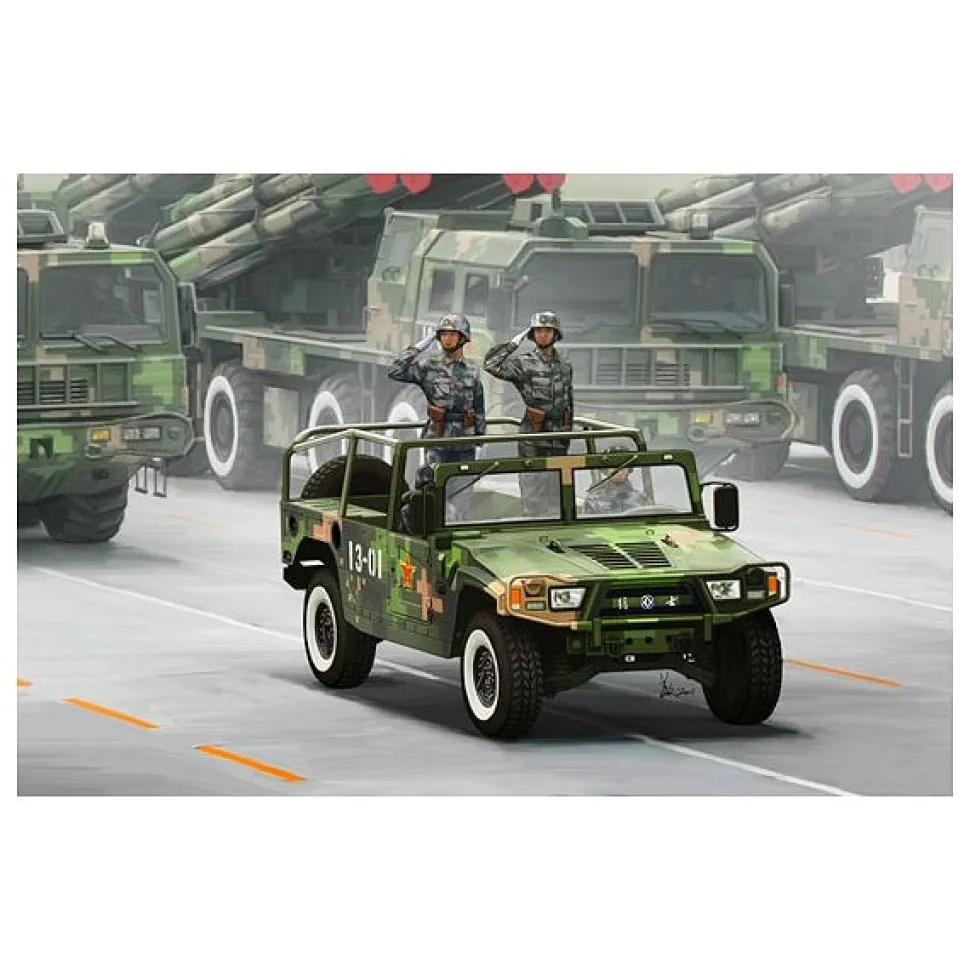 Véhicule de parade – Dong Feng Meng Shi 1.5 Dong Feng Meng Shi 1.5 Military Light Utility Vehicle- Parade Version.170 pièces à assembler : châssis avec détails soignés, pneus en caoutchouc véritable, photo découpe pour les grilles du moteur.