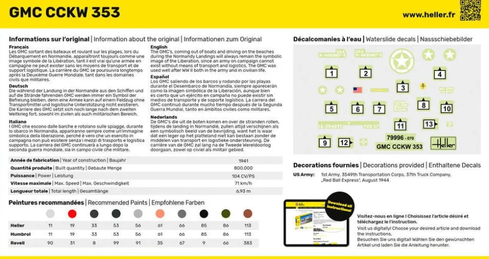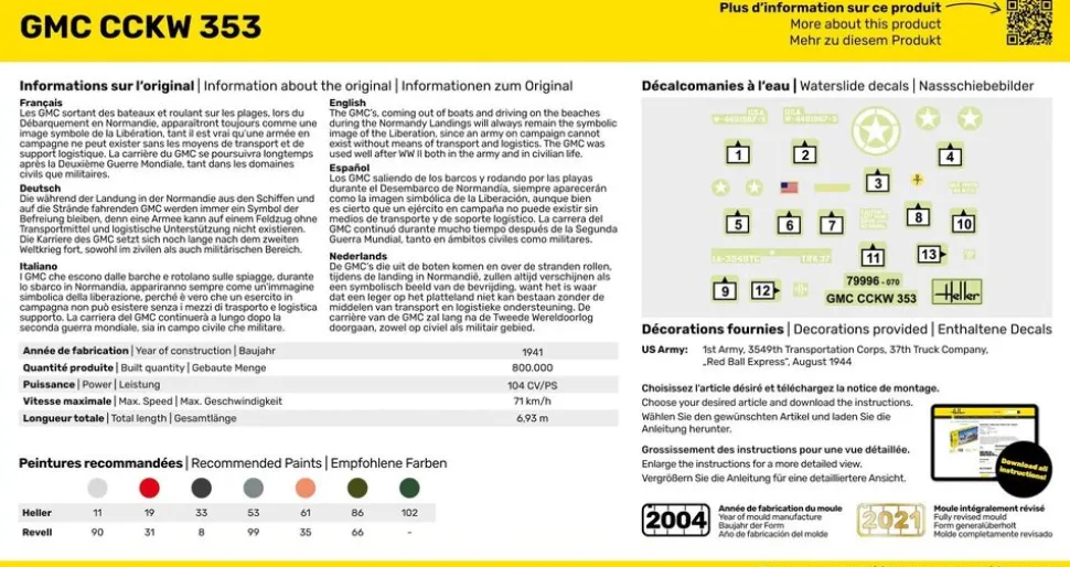 Caractéristiques détaillées : Maquette véhicule militaire : Kit : GMC CCKW 353