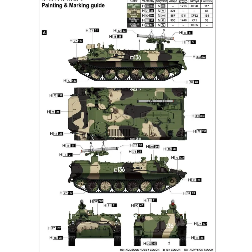 Trumpeter présente cette maquette à l’échelle 1/35 du chasseur de char et véhicule de lancement russe 9P149.