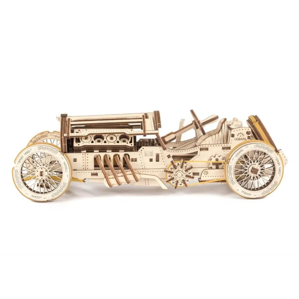 Et c’est parti pour une course de folie avec cette maquette en bois de voiture : Bolide U-9 « Grand Prix ». Ce puzzle 3D mécanique possède un moteur V8 à V16 soupapes, il est également constitué d’un arbre de transmission qui change les modes de conduite entre le ralenti, l’arrêt et le mode « sport ». Il dispose d’une fourche suspendue à suspension et de roues assurant une accélération rapide et une longue autonomie. Cette réplique des premières voitures de courses sportives ayant participé au premier Grand Prix d’Italie au début du 20ème siècle est très réaliste mais également très élégante. Cette maquette de 384 pièces est adaptée pour les plus de 14 ans. Elle est à l’échelle 1:12 et mesure une fois assemblée 5 x 9,5 x 13 cm. L’emballage mesure 37 x 17 x 2,7 cm. L’assemblage est à faire soi-même, ne nécessite pas de colle et vous demande entre 6 à 7 heures de concentration environ.