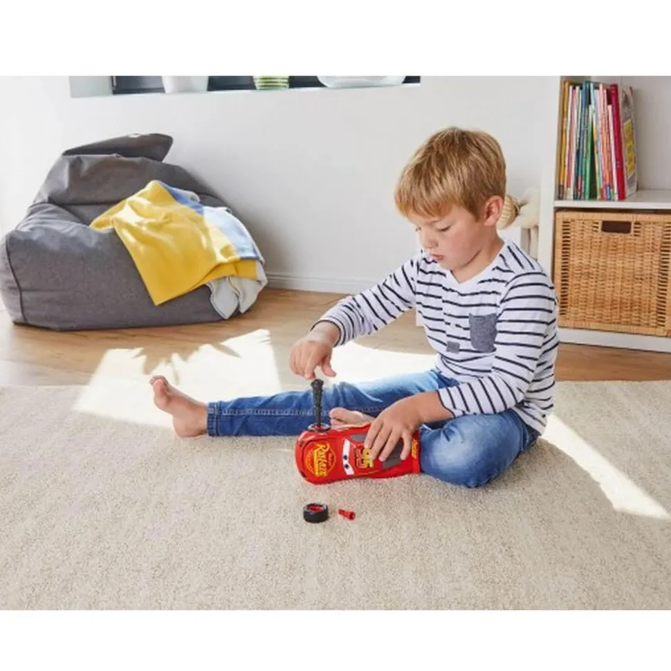 Et voici le héros des célèbres films Cars de Disney Pixar. Ce kit de montage est parfaitement adapté aux enfants. Composé de 19 pièces individuelles, des vis correspondantes et d’un tournevis parfaitement adapté aux mains des enfants, partez à la conquête de tous les circuits de course dans la chambre d’enfant. Des effets de son et lumière très cools sont activés en appuyant sur le capot – pour une atmosphère de course authentique ! Assemblage ultra-facile grâce au système à visser sans effort. Longueur d’env. 21 cm.