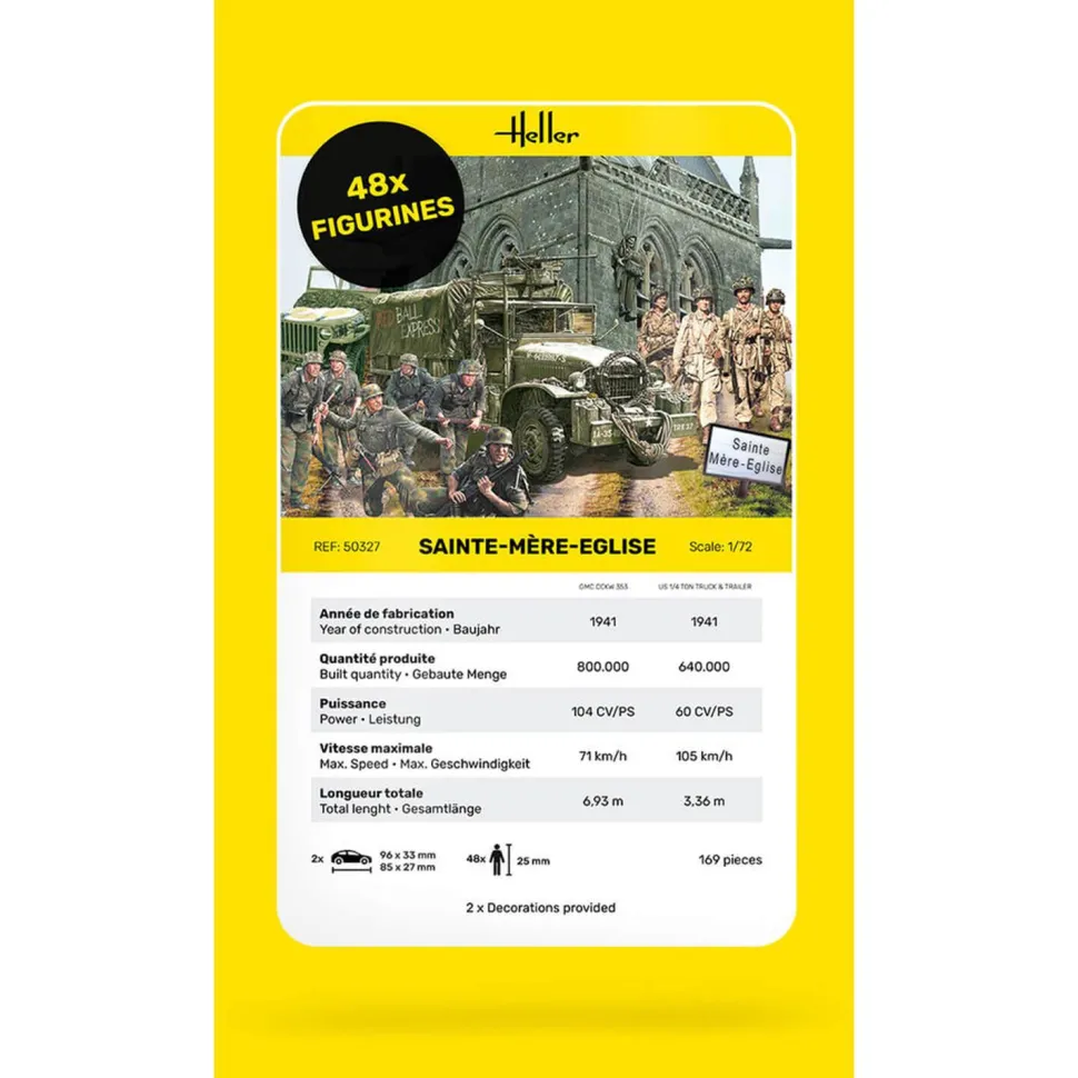 Caractéristiques détaillées : Maquettes véhicules militaires : Sainte Mère l’Eglise : GMC, JEEP et figurines