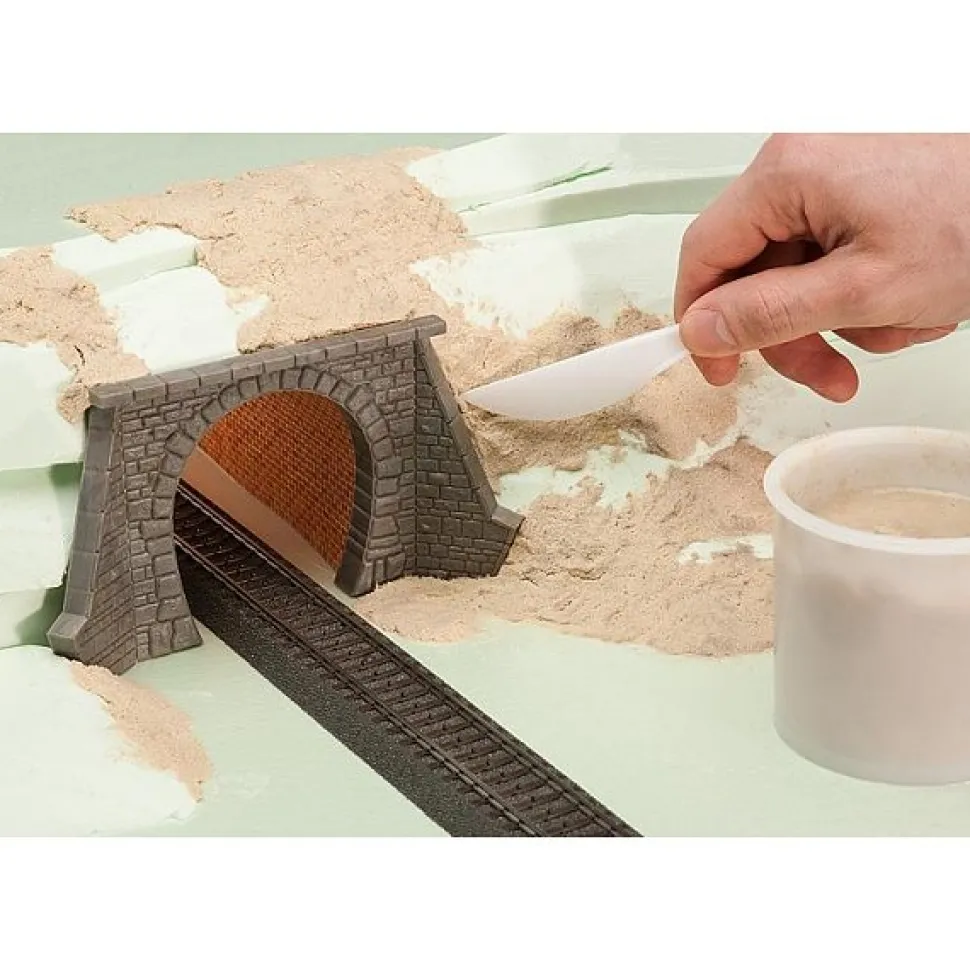 Le mastic pour construction de terrains, du matériel léger pour la conception de formations rocheuses, incolore. 120 g de poudre de mastic pour 780 cm³ de mastic.L’hydrocèle est un agent de construction permettant un modelage de différents paysages semblables aux originaux et permettant l’insertion de maisons et de bâtiments, de portails de tunnels et de ponts. Les pièces de construction en hydrocèle sont extrêmement légères tout en étant très stables.Mélanger l’hydrocèle jusqu’à obtention d’une masse pâteuse. Le contenu est suffisant pour une masse de mastic d’environ 780 ccm (3/4 l), donc plus de 3/4 du volume de cet emballage, en le mélangeant à environ 0,5 l d’eau. La masse est traitable durant environ 8 heures et sèche après environ 24 heures. Le mastic non coloré et neutre est variable avec de la peinture à dispersion. Vous trouverez également des conseils intéressants sous www.faller.de Convient pour les échelles H0 (1/87), TT (1/120), N (1/160) et Z (1/220).