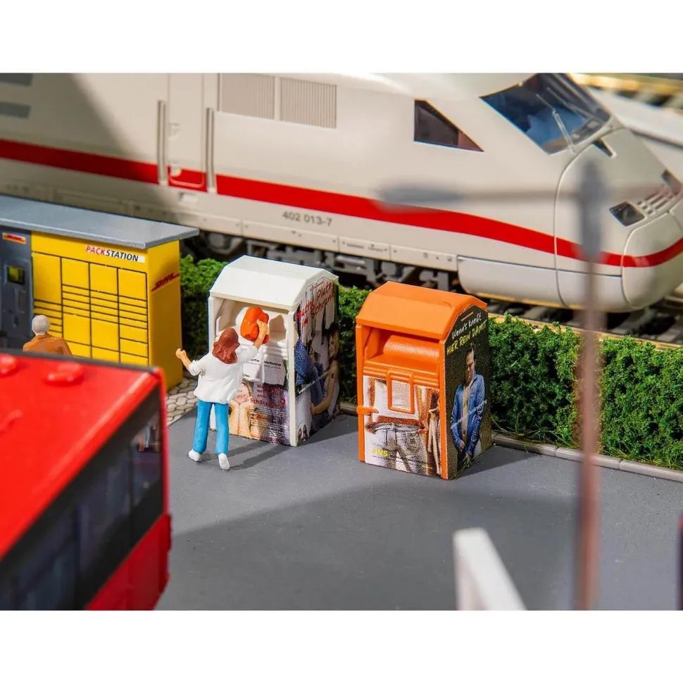Modélisme HO : 4 conteneurs à vêtements usagés, de la marque Faller.