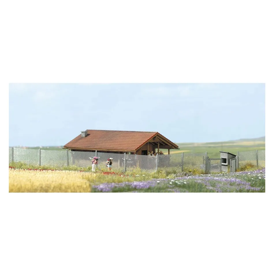 Busch 1017 vous propose cette clôture grillagée et son portail assorti.Ce set comprend 94 cm de clôture en grillage d’une hauteur de 25 mm environ, ainsi que 24 poteaux et 1 portail.Echelle HO (1/87)