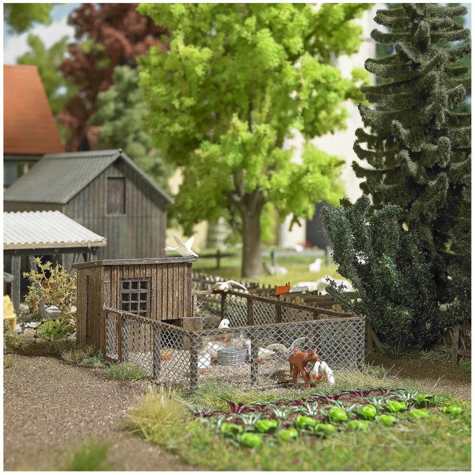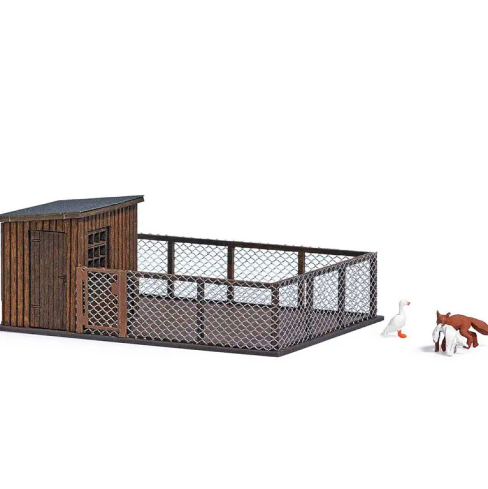 Busch 1039 vous propose ce poulailler avec un renard volant une oie.Echelle : 1:87