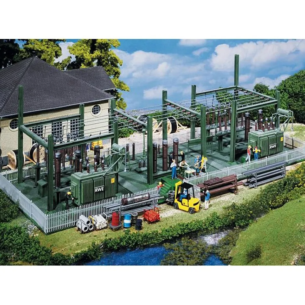 Modélisme ville et campagne HO – Poste de transformation Transformateur avec isolateurs, transformateurs, câblages etc.Époque III : 1946 – 1977Degré de difficulté : StandardNombre de pièces : 434.Dimensions : 38.8 x 14 x 12.2 cm.