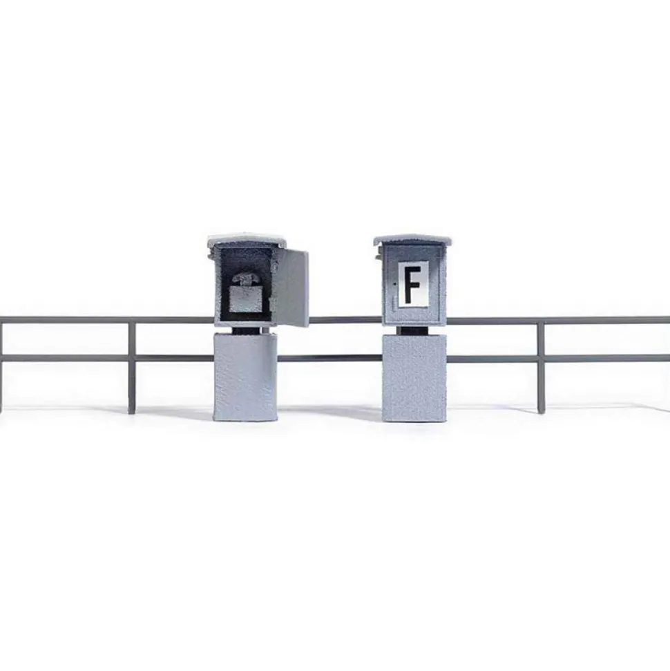 Kit comprenant deux postes de téléphones de signalisation. Un poste avec porte ouverte et aménagement intérieur. Avec rambarde appropriée (Longueur : 90 mm).