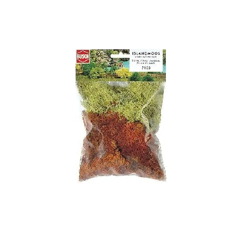 Lichen de 2 couleurs différentes : jaune et rouge.Idéal pour la conception de buissons, flore de montagne, rives, etc.Végétation naturelle : mousse d’Islande.Poids : 35gConvient pour échelles HO (1/87), TT (1/120), N (1/160) et Z (1/220).