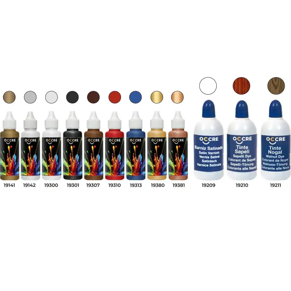 La marque Occre vous présente le pack de peintures acryliques, vernis et colorants adaptés à la maquette du bateau en bois du San Felipe