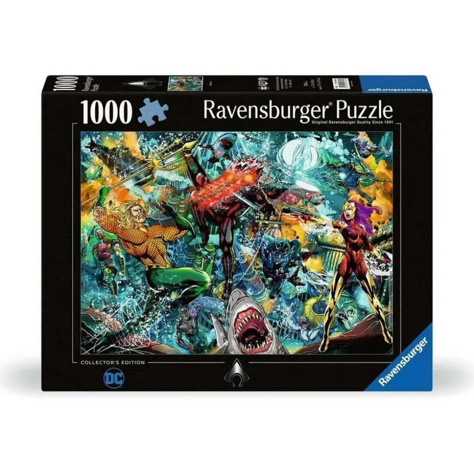 Découvrez le puzzle 1000 pièces, Aquaman, Collection DC de la marque Ravensburger !