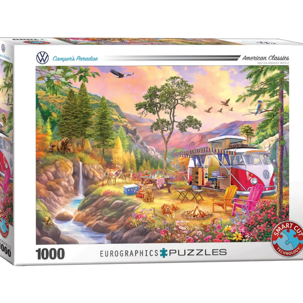 Description du produit : Puzzle 1000 pièces : Bus VW – Le paradis des campeurs