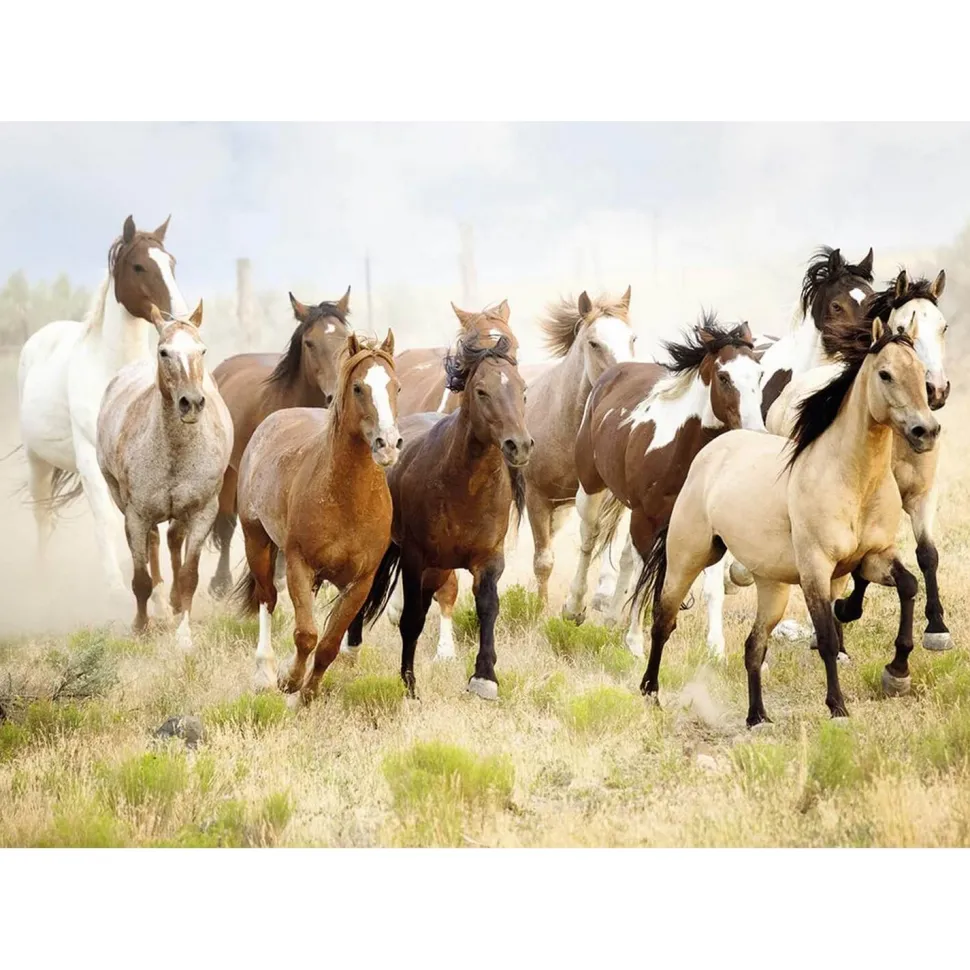 Les passionnés de chevaux découvriront avec plaisir cette belle illustration de chevaux au fur et à mesure qu’ils assembleront les pièces de ce puzzle. En effet, cette peinture met en scène une harde de chevaux sauvages galopant dans le désert.Ce puzzle en carton de marque Nathan a pour thème une peinture de chevaux. Composé de 1000 pièces, il est de difficulté moyenne et sera donc adapté pour les plus de 12 ans. Réalisé en format paysage, il mesure une fois assemblé 70 cm de longueur et 50 cm de largeur.