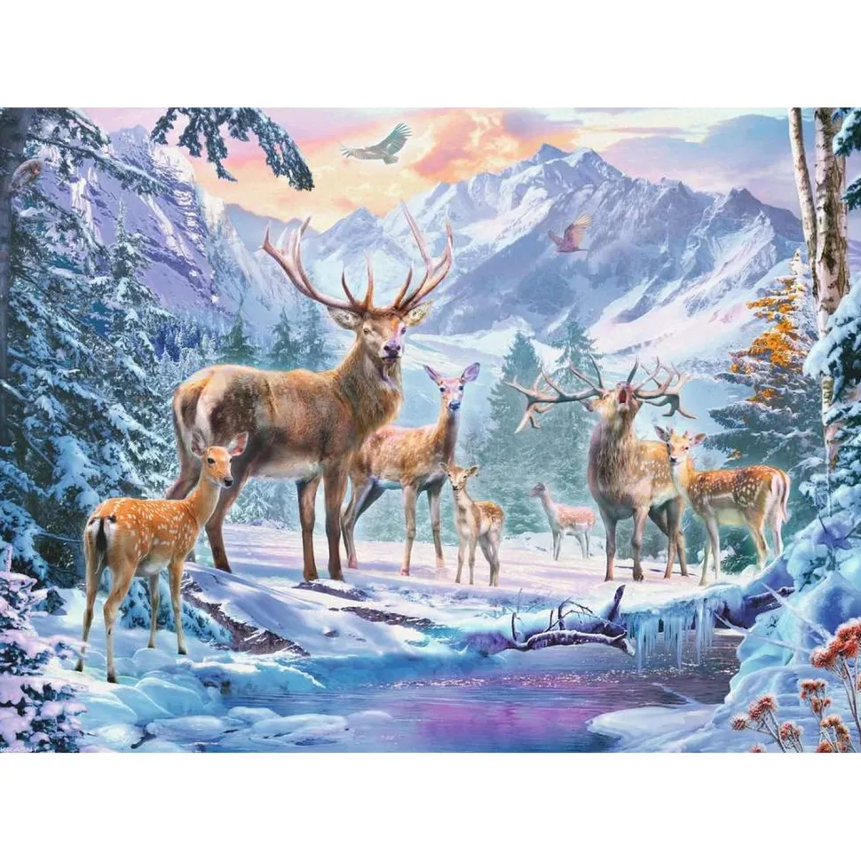 Caractéristiques détaillées : Puzzle 1000 pièces : Chevreuils et cerfs en hiver