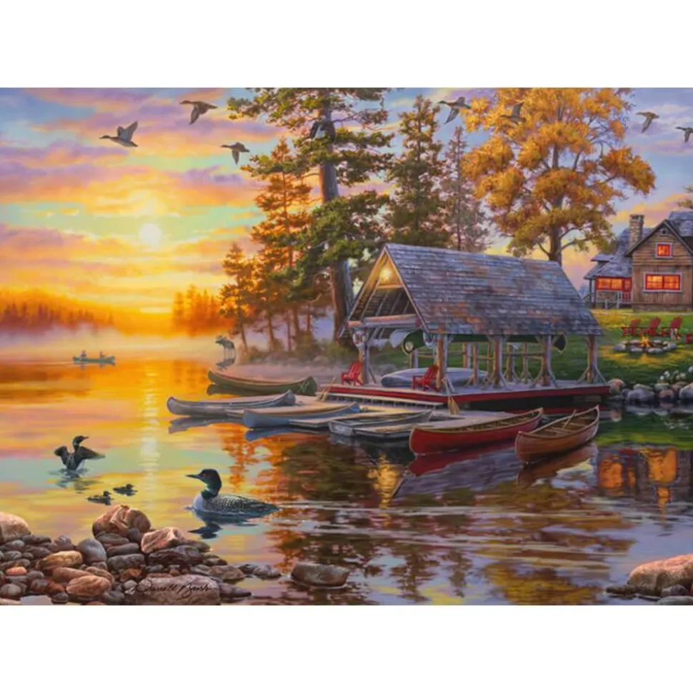 Description du produit : Puzzle 1000 pièces : Hangar à bateaux avec canoës