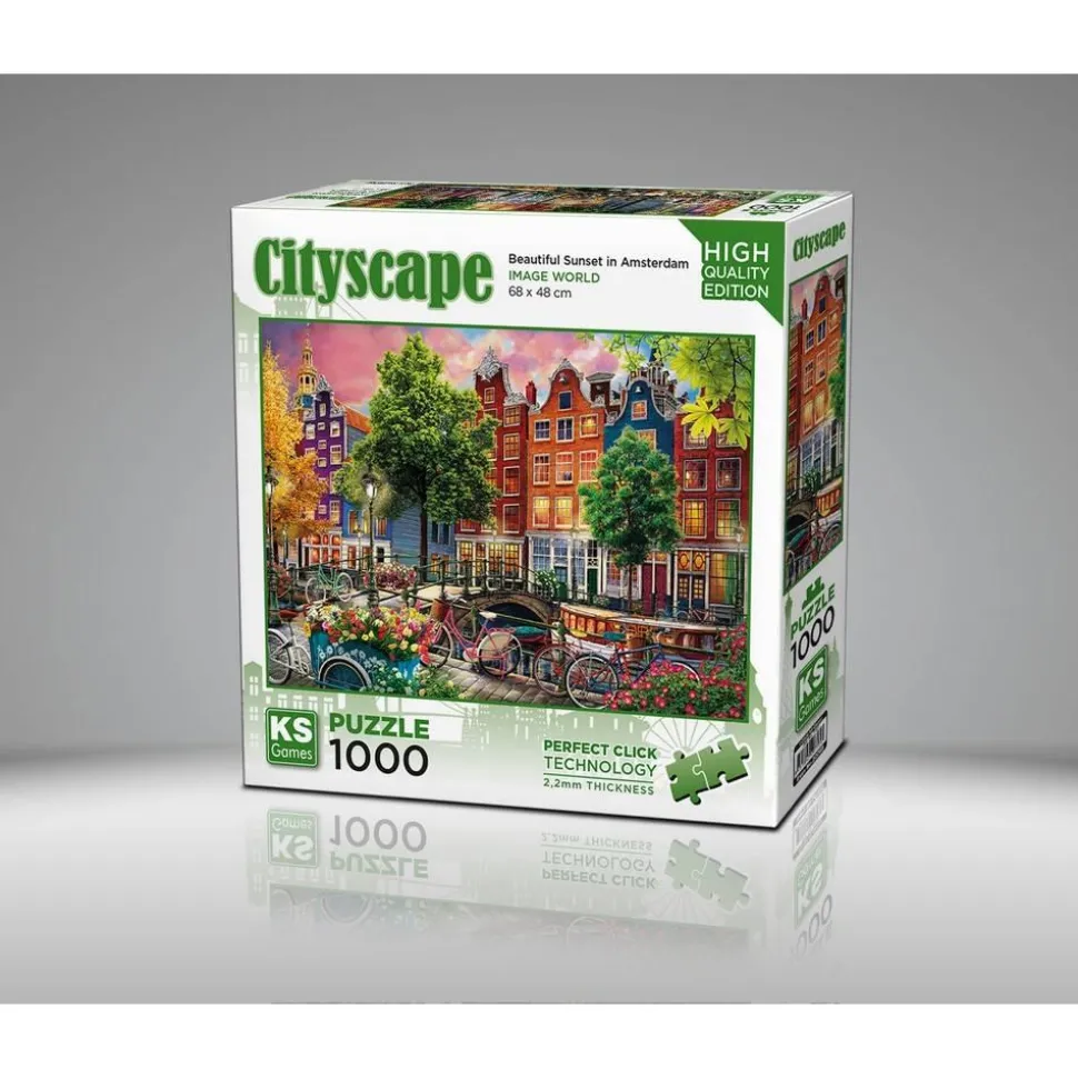 Description du produit : Puzzle 1000 pièces : Magnifique Coucher de Soleil à Amsterdam