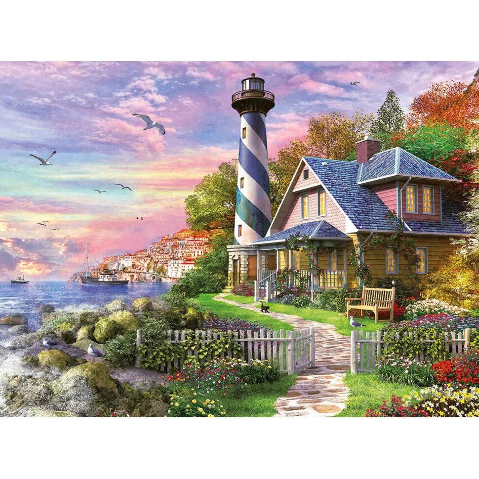 Vivre au bord de la côte et observer les bateaux du haut de son phare, un rêve ? Ce puzzle vous propose de reconstituer un magnifique paysage de carte postale avec une maison et son phare au milieu d’un mini jardin donnant directement sur le bord de la mer.