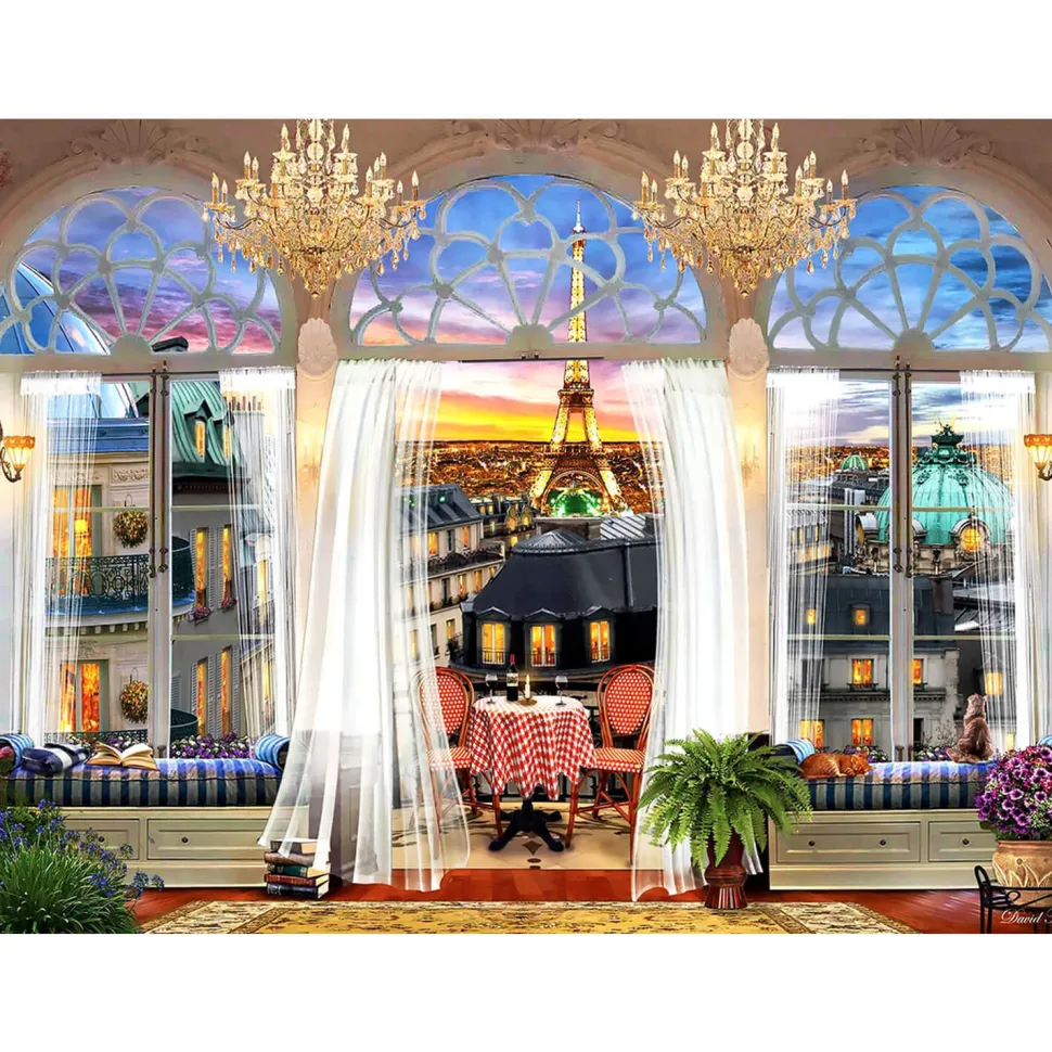 Découvrez une magnifique vue de la Tour Eiffel depuis la terrasse d’un appartement parisien à travers ce puzzle. Assemblez patiemment les pièces et découvrez un appartement aux grandes fenêtres donnant sur une petite terrasse. Sur celle-ci, vous trouverez une table bistrot entourée de deux chaises sur laquelle sont servis deux verres de vin rouge. Ainsi installés, les occupants de l’appartement bénéficient d’une vue sur les toits de Paris et d’une vue imprenable sur la Tour Eiffel.