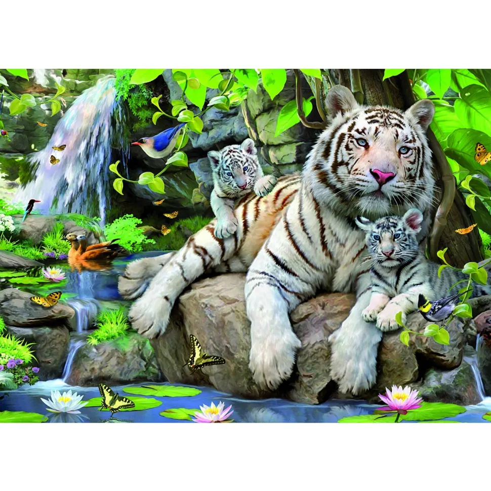 Caractéristiques détaillées : Puzzle 1000 pièces – Tigres blancs du Bengale