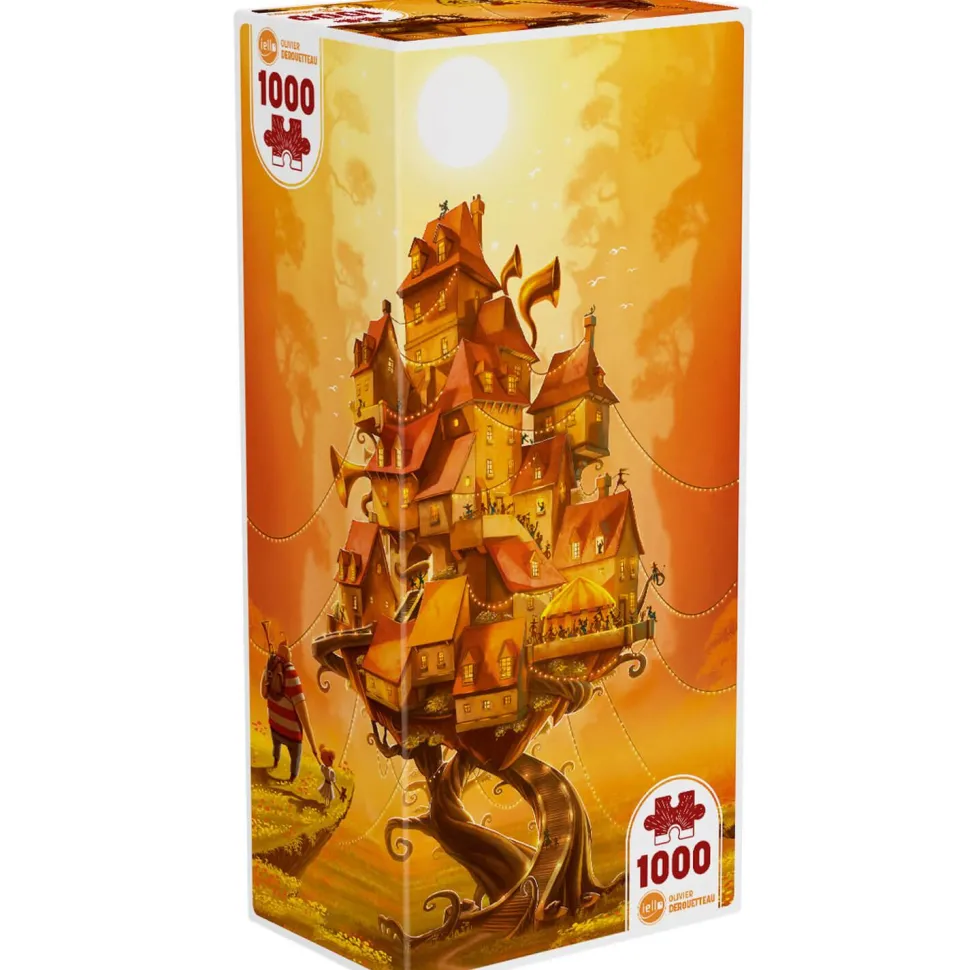 Que voici un puzzle chaleureux, à l’image de l’illustration qui l’habille ! Grace à la netteté du trait et à la présence d’éléments facilement identifiables, vous allez pouvoir vous aventurer dans cet étrange village sans trop de difficultés. Ce sera également l’occasion de vous familiariser avec ses habitants festifs qui envahissent les rues !