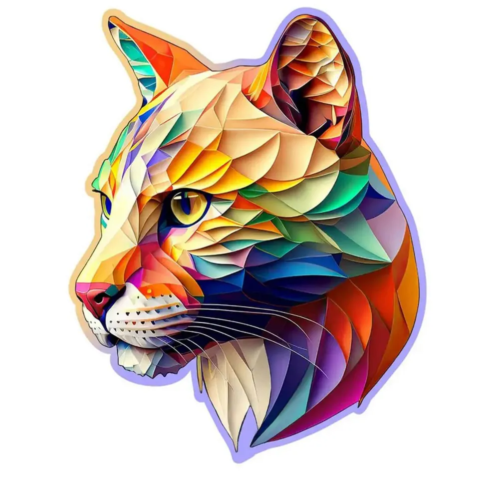 Description du produit : Puzzle 150 pièces/15 formes en bois : puma coloré