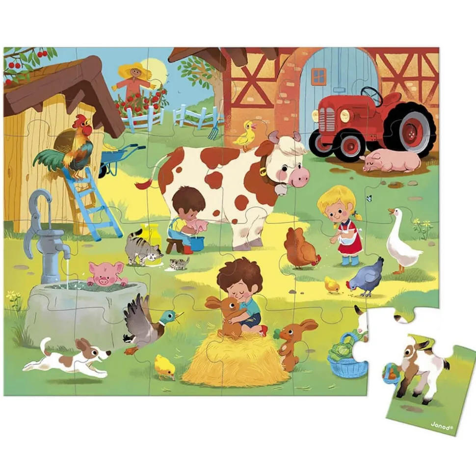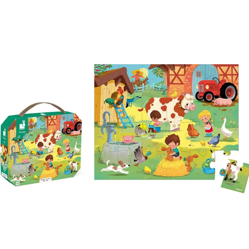 Puzzle 24 pièces : valisette : une journée à la ferme, de la marque Janod.