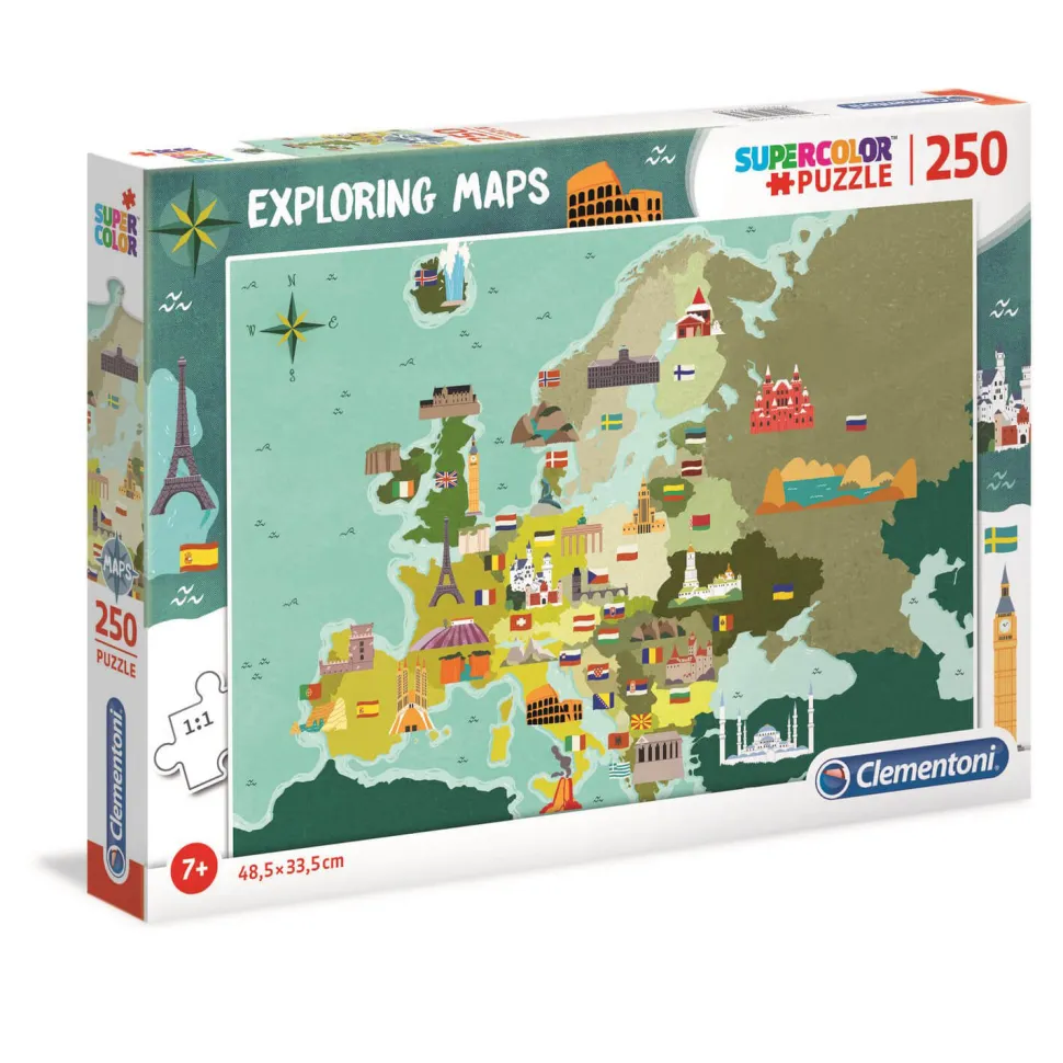 Description du produit : Puzzle 250 pièces Exploring Maps : Europe – Monuments et Merveilles