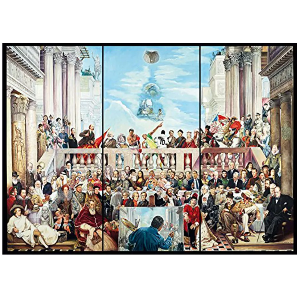 Plongez dans l’univers de Mr Casaro avec ce puzzle !Découvrez cette illustration de ce peintre connu et célèbre dans le monde entier pour ses affiches de films. Sur cette peinture, nous retrouvons un artiste qui peint sur une toile 105 personnages célèbres en mélangeant toutes les époques. Vous distinguez des célébrités tels que Mickaël Jackson, Elvis Presley, James Dean, The Clown, John F.Kennedy, The Beatles, Barack Obama, Fidel Castro, le Roi Henri VIII, Van Gogh, Marie Antoinette et bien d’autres encore …Ce puzzle Schmidt illustre une peinture de Renato Casaro . C’est un puzzle de niveau difficile composé de 3000 pièces, conçu en carton de qualité supérieure et qui est adapté pour les plus de 15 ans. De format paysage, il mesure une fois assemblé 117.5 cm de longueur et 83.7 cm de largeur.