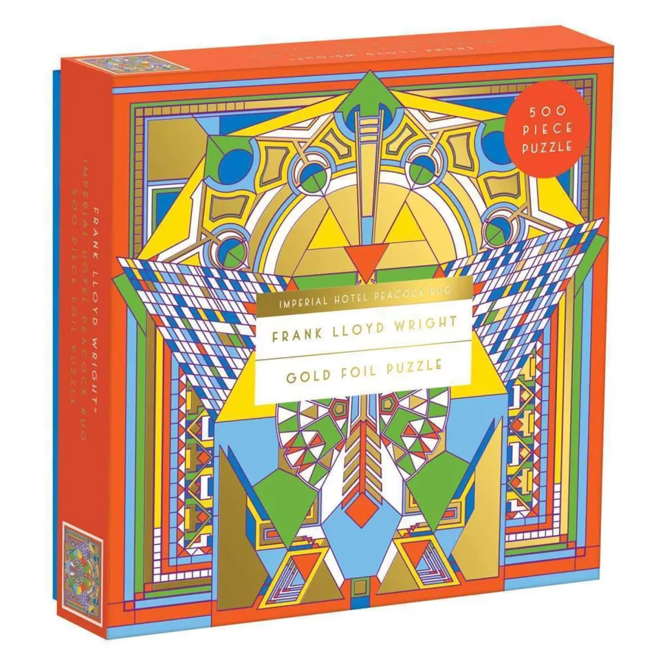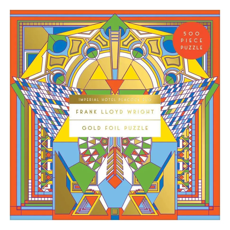 Description du produit : Puzzle 500 pièces effet alu : Tapis paon de l’Imperial Hotel, Frank Lloyd