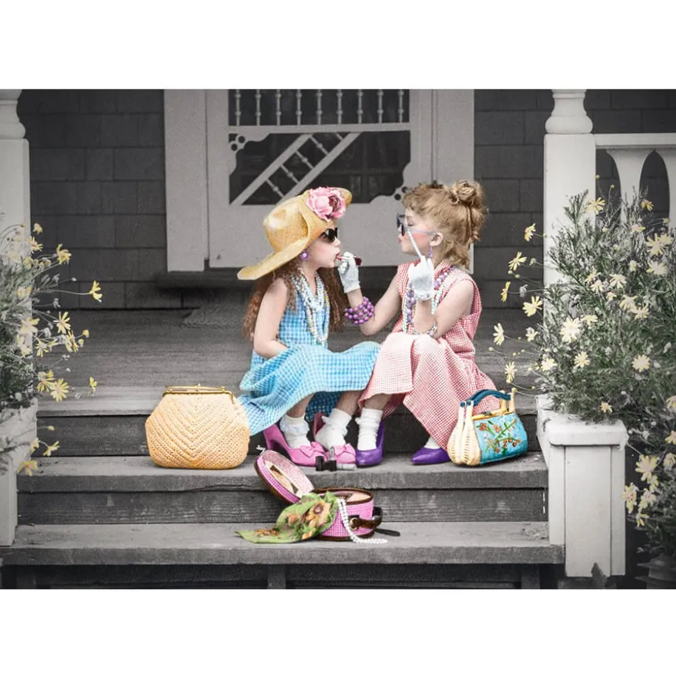 Un puzzle parfait pour les amateurs de vintage ! Assemblez les pièces de ce puzzle une à une et découvrez une photographie à l’esprit rétro qui met en scène deux petites filles en pleine séance de maquillage.Toutes deux assises sur le perron fleuri d’une maison, elles apportent la touche finale à leur maquillage et jouent à imiter les adultes.