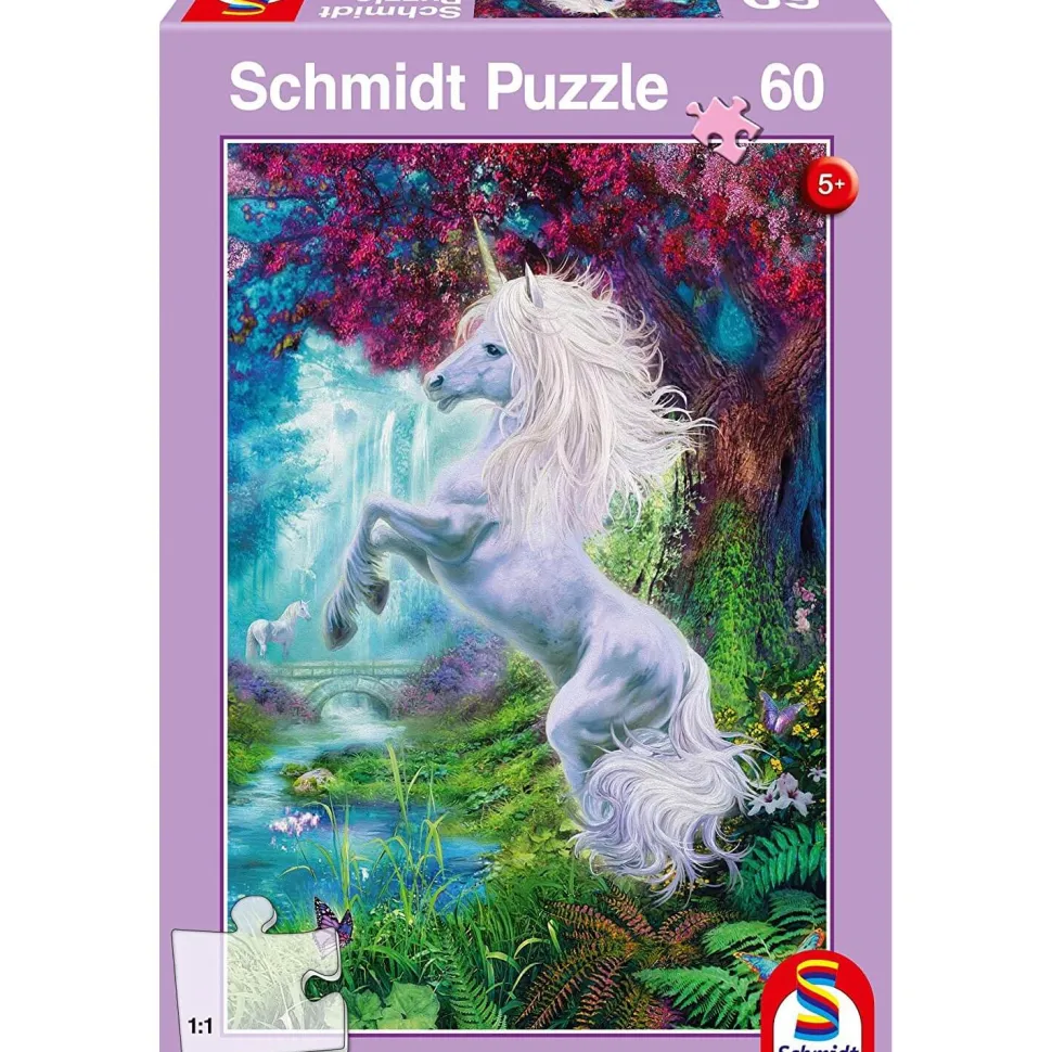 Description du produit : Puzzle 60 pièces : Licorne dans un jardin enchanté