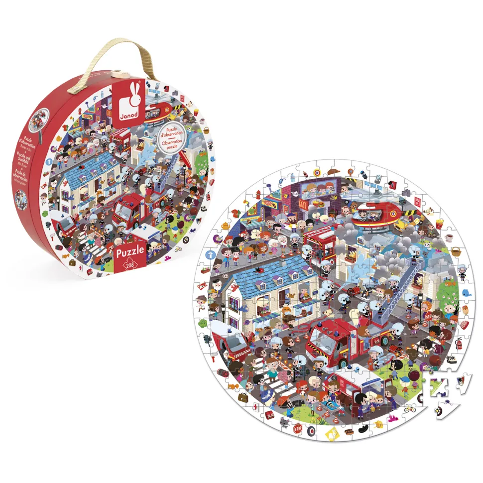 Description du produit : Puzzle d’observation rond 208 pièces : Pompiers de l’extrême
