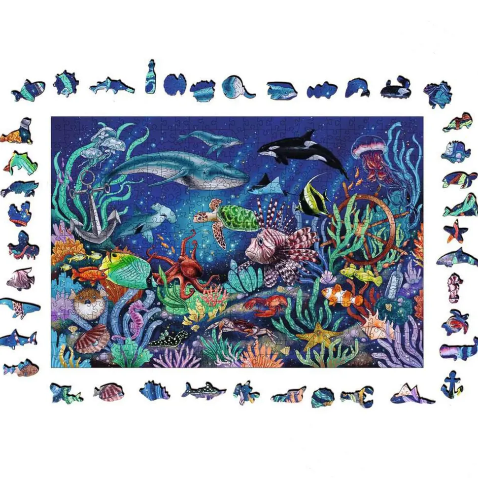 Description du produit : Puzzle en bois 500 pièces : Monde marin coloré