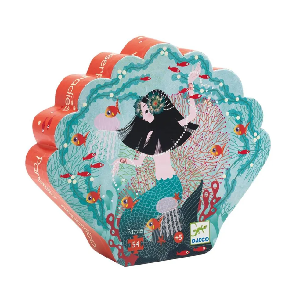 Un adorable puzzle haut en couleur qui devrait ravir les petits amoureux de la mer !Au fur et à mesure que votre enfant assemblera les pièces, il découvrira un véritable paradis aquatique. L’illustration ainsi reconstituée représente le monde sous-marin parcouru par des sirènes et peuplé d’animaux et végétations en tout genre. Ce puzzle a tout pour lui plaire! De plus, il est livré dans une jolie boite silhouette qui trouvera sa place sur l’étagère pour décorer sa chambre.Ce puzzle de la marque Djeco sur le thème aquatique se compose de 54 pièces en carton. Il conviendra aux apprentis « puzzleurs » de plus de 5 ans. Une fois assemblé, ce puzzle mesure 37 cm de largeur pour 40 cm de longueur.