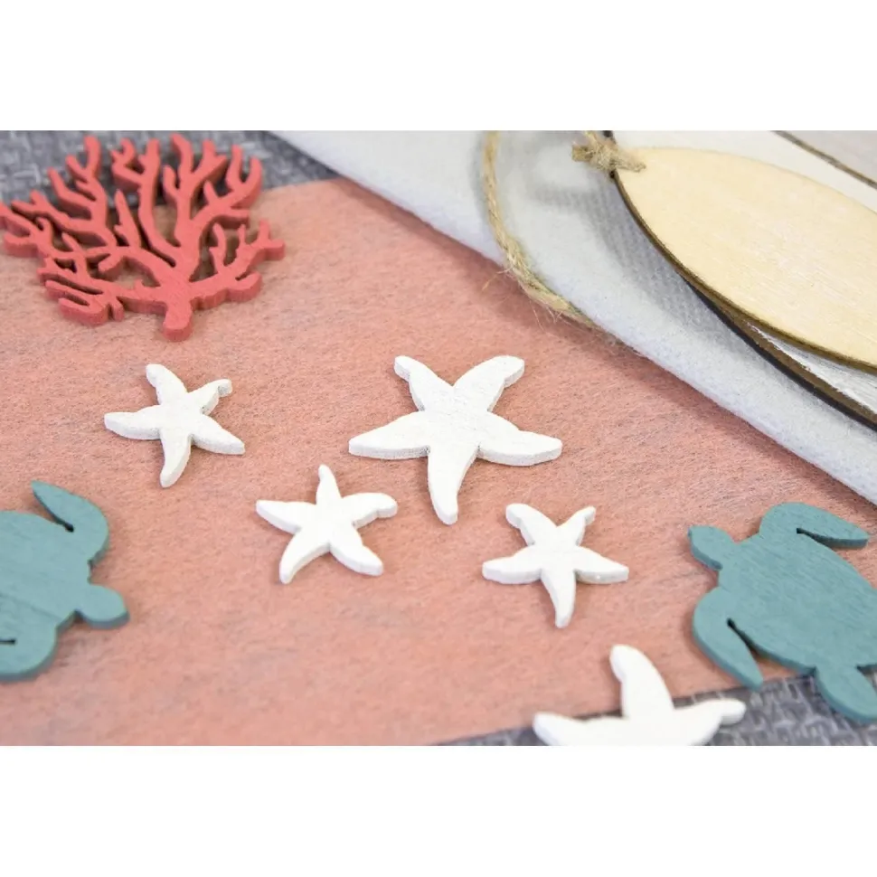 Sachet de 10 confettis Tortue de mer turquoises en bois, en assortiment de 2 tailles, 5,5 cm et 3 cm
