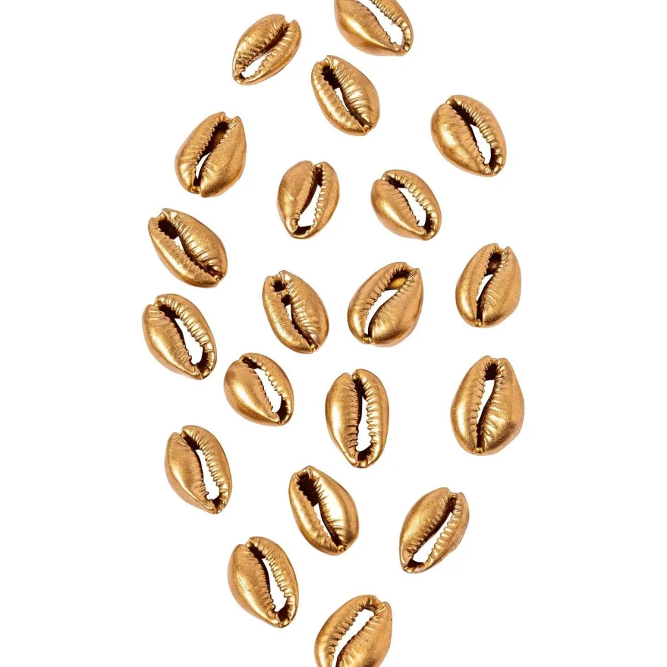 Description du produit : Sachet de 20 coquillages Cauris DORES 2×1,5 cm