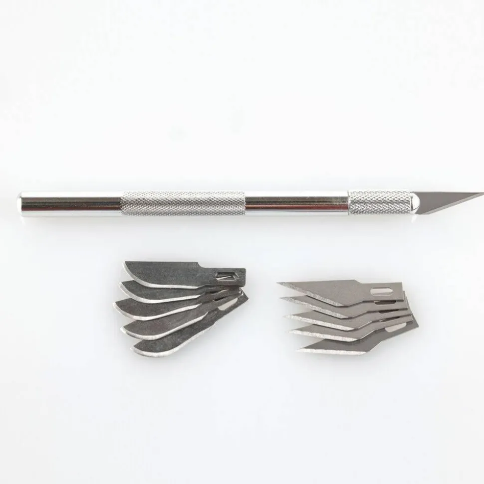 Scalpel avec manche en aluminium (125 mm de long) équipé d’une lame pour les coupes fines et pour tailler, entailler, piquer et parer. Le manche fin avec sa surface striée tient bien en main et permet un travail contrôlé.