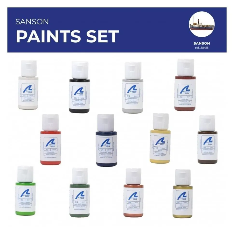 Caractéristiques détaillées : Set de 12 peintures pour maquette bateau – Sanson