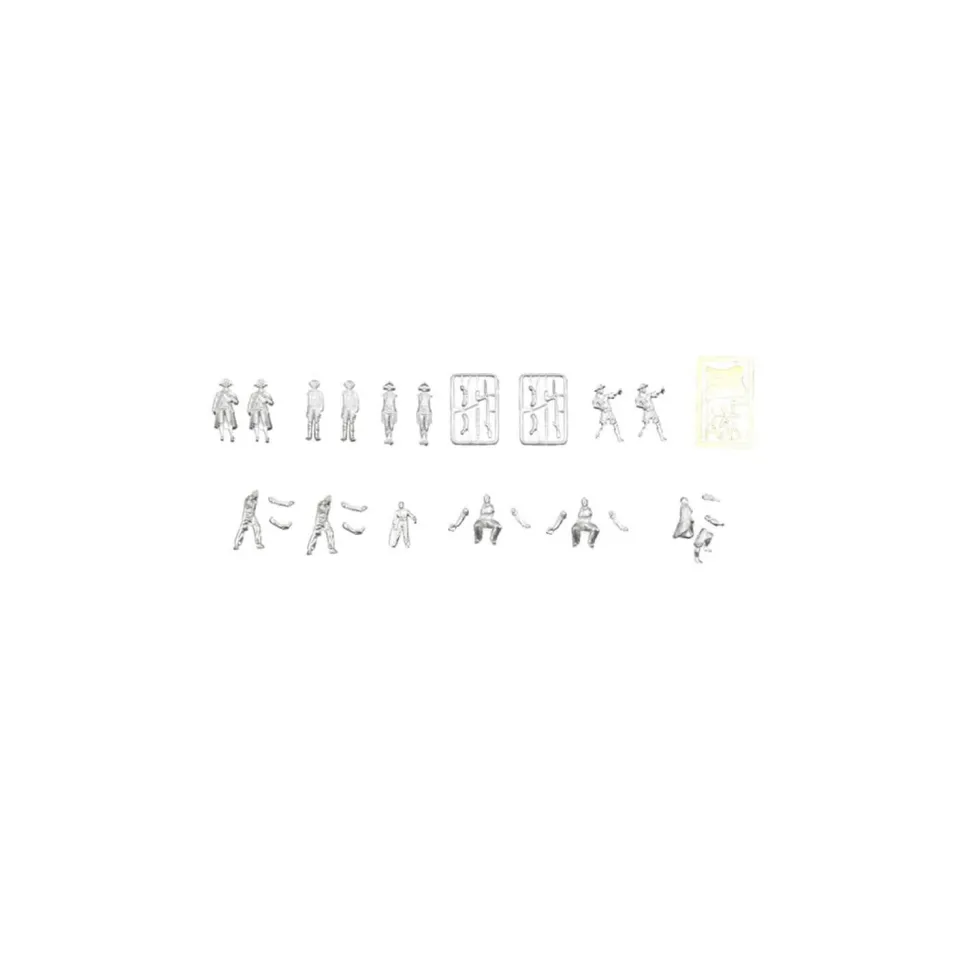 Set de 14 figurines avec accessoires en métal à assembler et peindre à l’échelle 1/65 pour la maquette en bois du navire britannique emblématique de James Cook : HMS Endeavour.