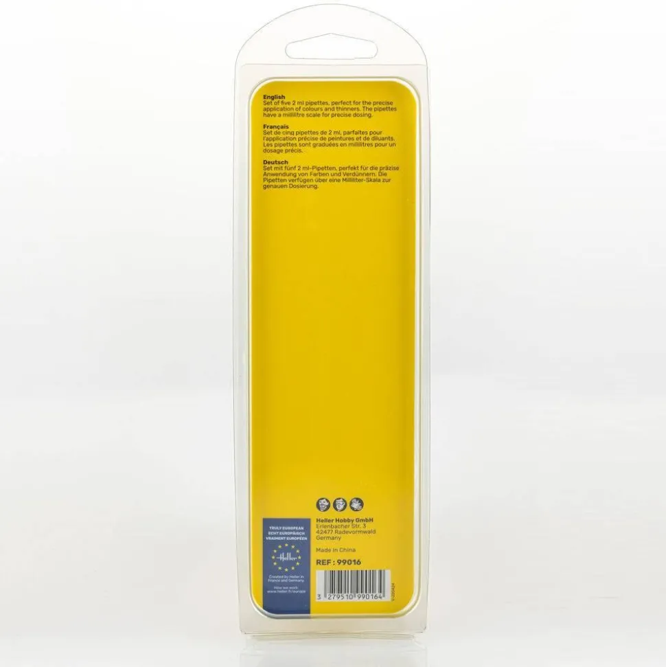 Set de cinq pipettes de 2ml, parfaites pour l’application précise de peintures et de diluants. Les pipettes sont graduées en millilitres pour un dosage précis.