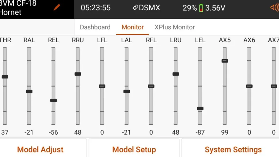 Ajustez facilement les fonctions programmées pendant le vol sans avoir à accéder maladroitement à un menu spécifique ou à atterrir juste pour ajuster un réglage. On-The-Fly (OTF) vous permet d’ajuster les mélanges et autres valeurs programmées à la volée en utilisant simplement l’une des quatre commandes de trim auxiliaires (non pas les commandes de trim principales) que vous sélectionnez.