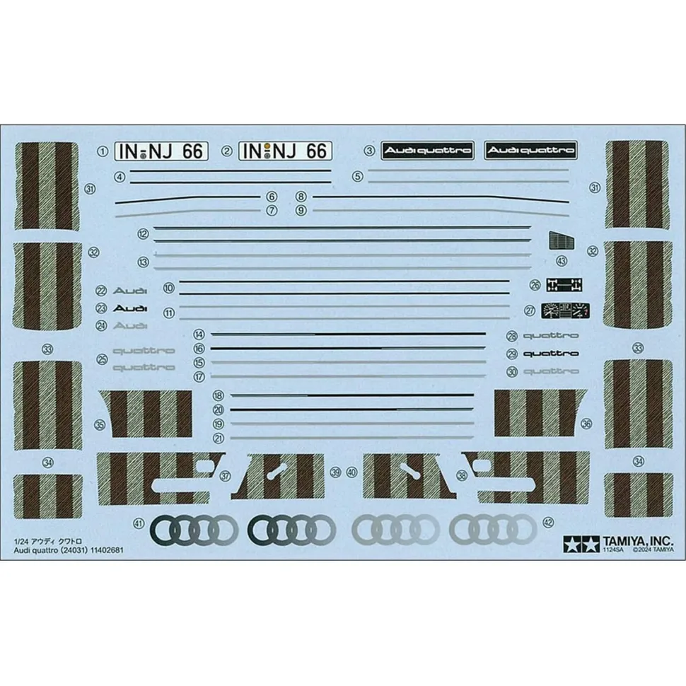 Les ailes bombées et le spoiler arrière sont reproduits sur cette reproduction réaliste du légendaire coupé 2 portes Audi quattro. Représentations authentiques du moteur 5 cylindres en ligne, de la suspension et du système de transmission intégrale. L’intérieur comprend des reproductions des sièges, du tableau de bord, du levier de vitesses et plus encore. Des décalcomanies sont utilisées pour les motifs des sièges. Pneus en caoutchouc synthétique solide à bande de roulement. Une figurine de pilote est incluse.